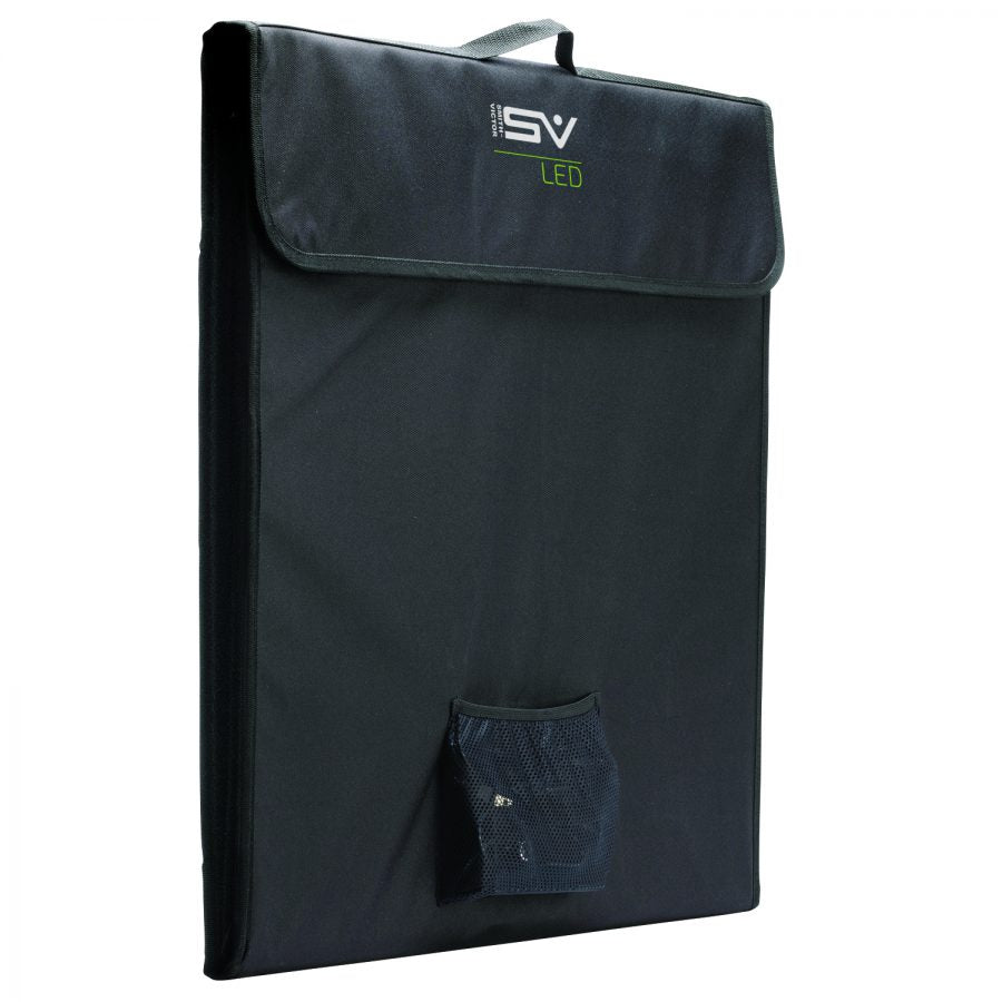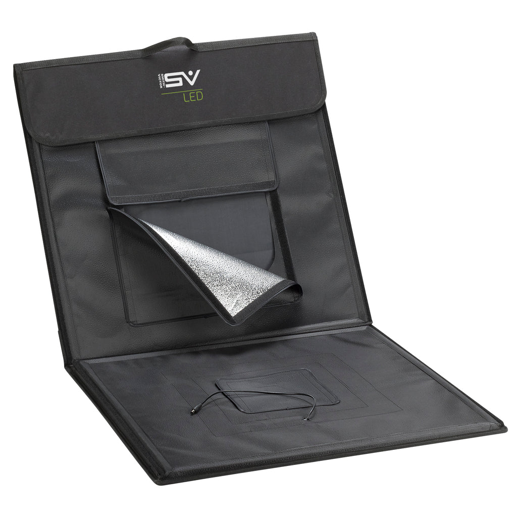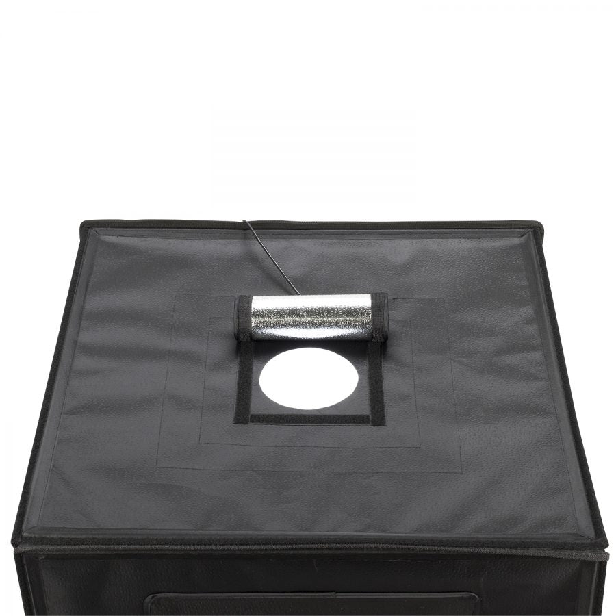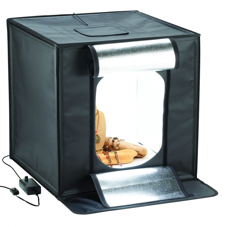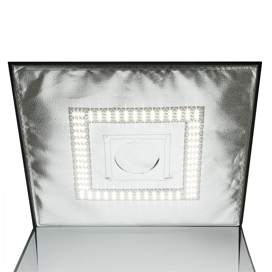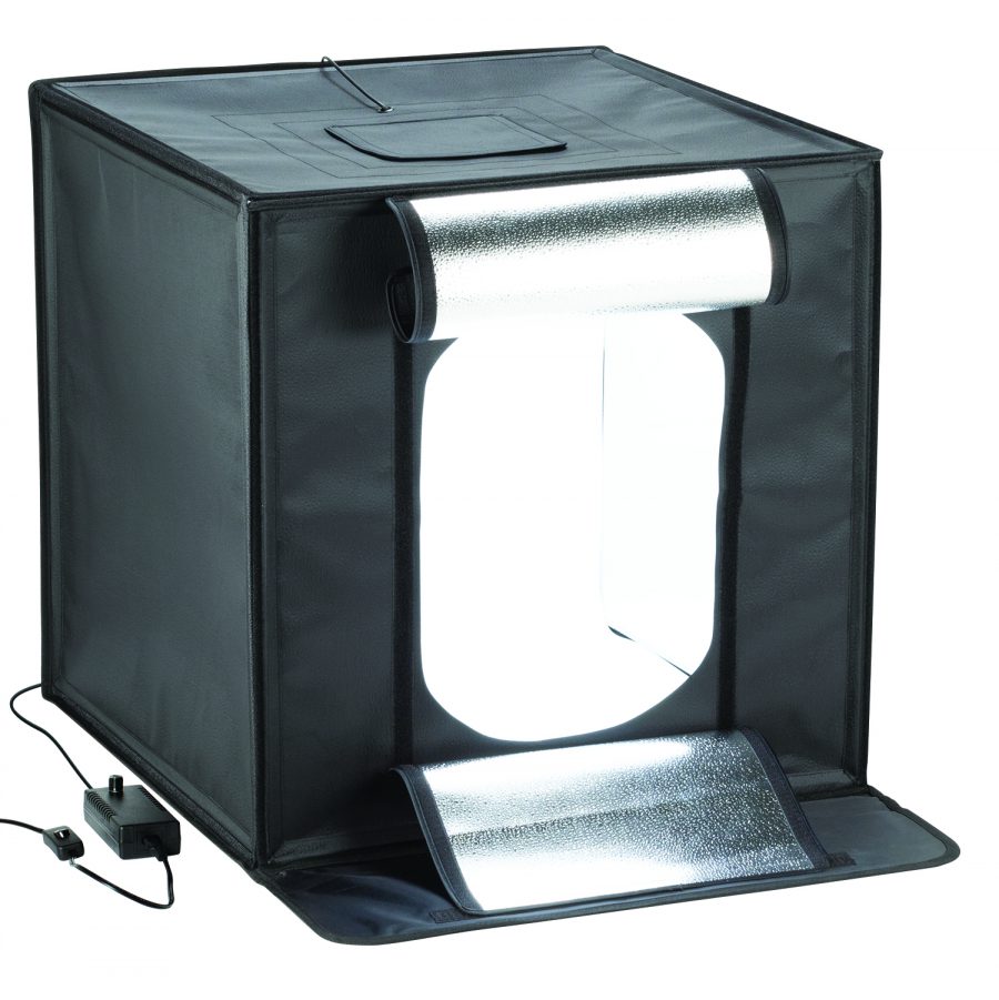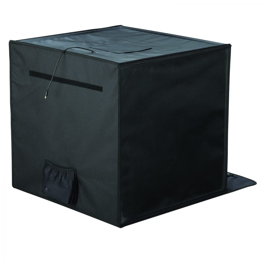 Smith-Victor LED Desktop Studio is the fastest and easiest way to get professional looking images using a phone or camera. Quick and easy to assemble even in a compact space. Allows for shots through the front opening or through the roof. When done, it folds flat for easy storage or transport. The handle and light control pouch make it easy to carry anywhere. This new and improved version is larger and has several new features.
