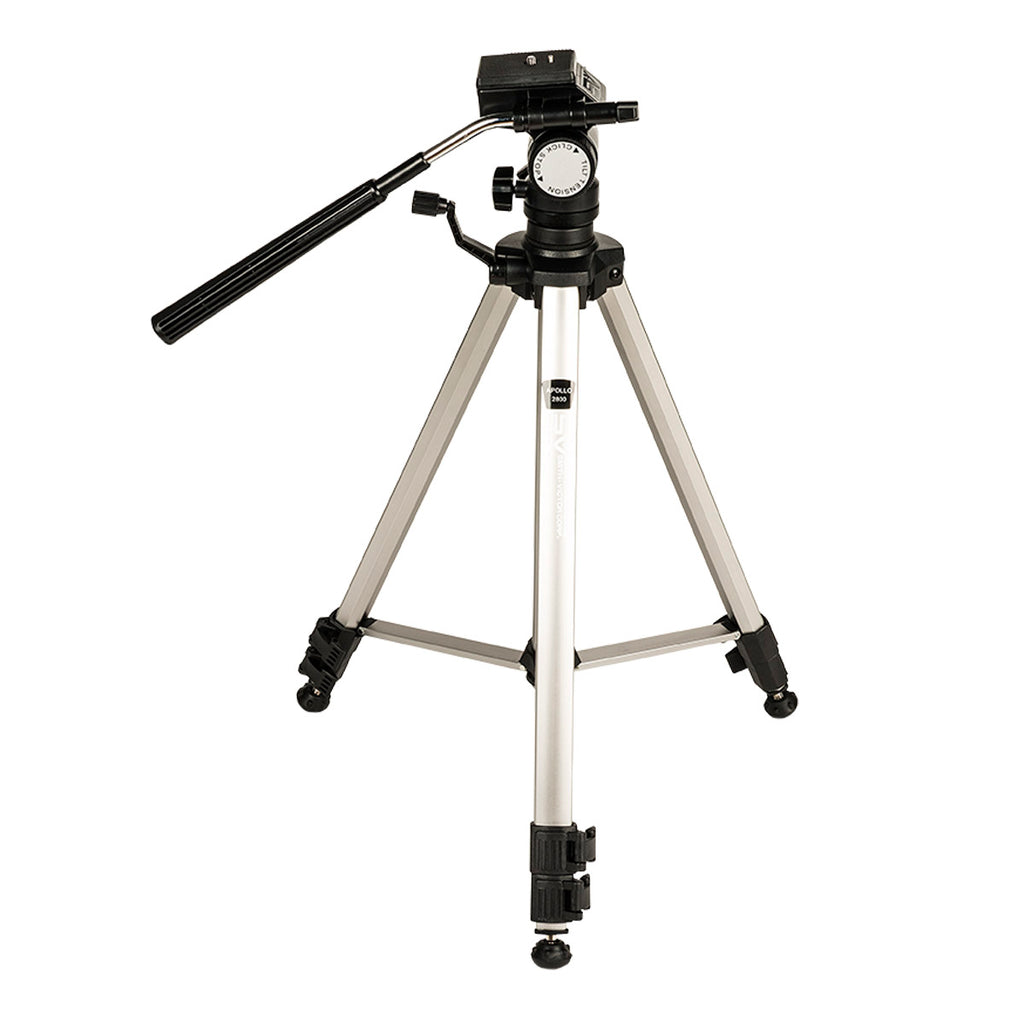 The Smith-Victor Apollo 2800 Medium-Duty Tripod with 2-Way Head is a medium-duty video tripod with a 2-way fluid-effect head that supports camcorders up to 12.0 lbs (5.4 kg). It features a convenient quick-release top stage, geared center column, and fast-action leg locks for rapid setup. One quick release is included.