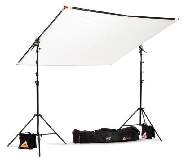 The Photoflex 77 x 77" LitePanel Kit frame is fabricated from aluminum to resist cracking, rough handling, and impact damage. The kit includes the frame, translucent fabric, a crossbar, two sets of frame hardware, two Extra Large LiteStands, two 22 lb capacity sandbags, and a carry bag to store and transport it all in. The sectional frame sets up and breaks down in seconds thanks to a modular design with a connective bungee cord that runs throughout the sections. The included white translucent diffusion fabric gives you an opportunity to create a wall of light, or since it has soft reflective qualities, it becomes a large fill light panel. It's also useful overhead to tame the harsh contrast of the noonday sun.