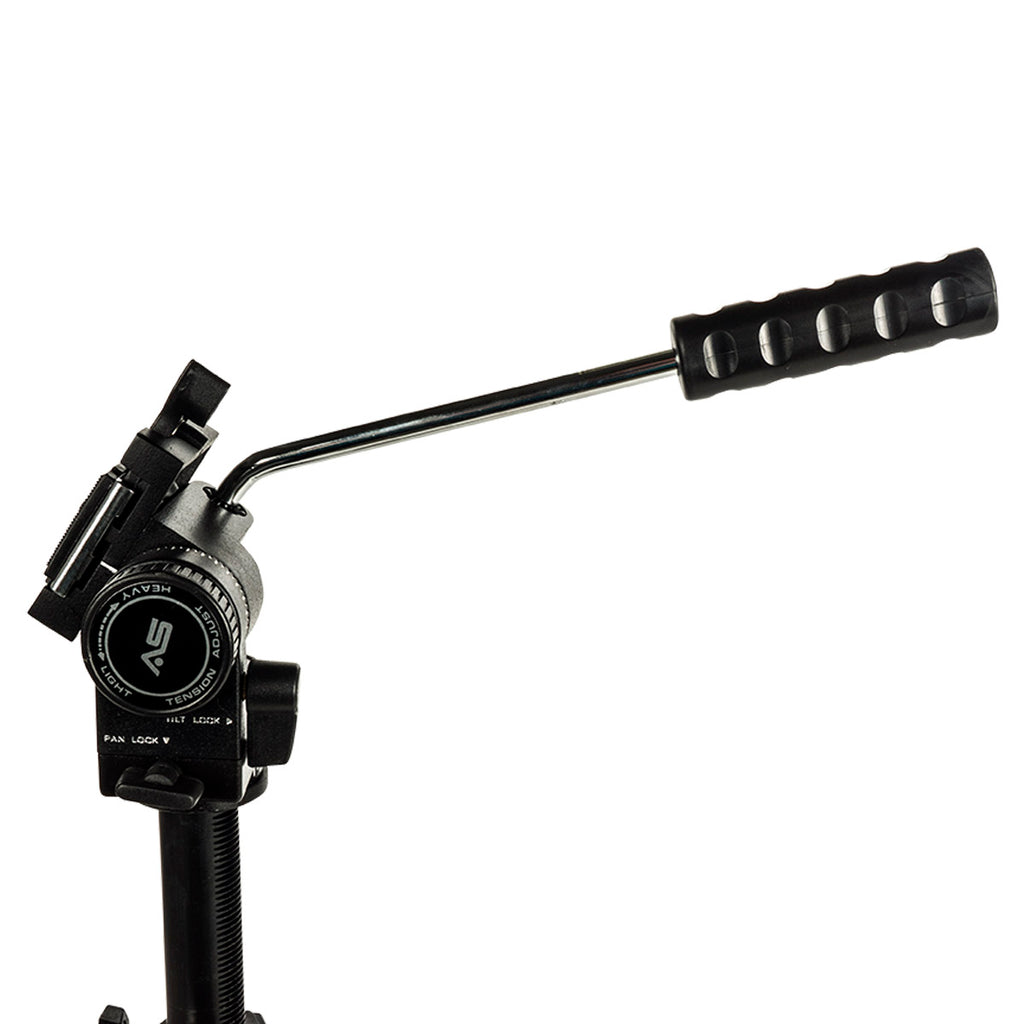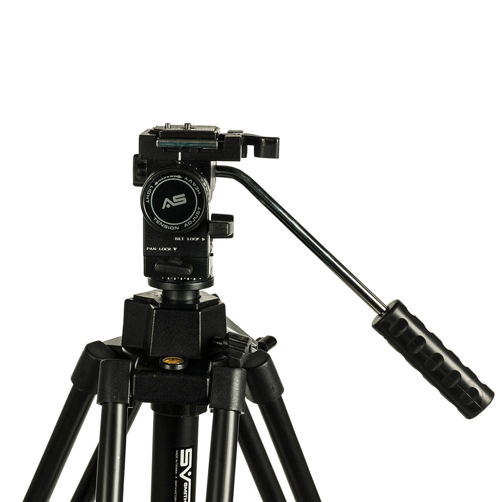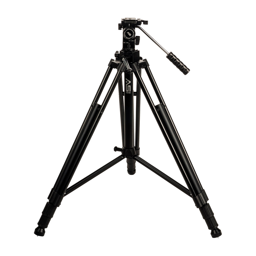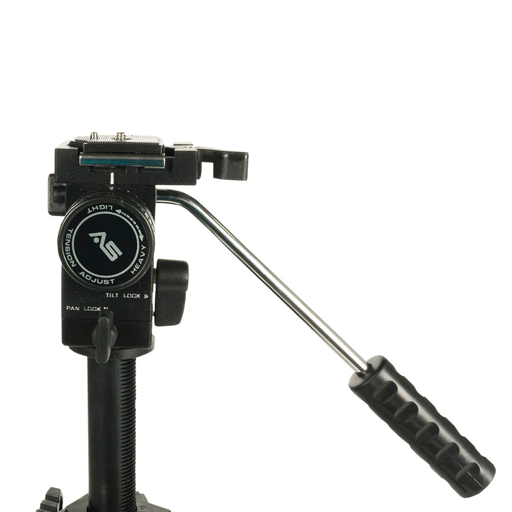 For videographers and filmmakers desiring a stable, sturdy yet inexpensive camera support Smith-Victor provides the Smith-Victor Propod III Med Tripod with Pro-3 2-Way Fluid Head - an all-in-one package. The tripod is built from die-cast aluminum that is lightweight and rigid. It is capped by the Pro-3 medium-duty video head with two-way motion control that is dampened by a fluid pivot. The head features a 360° pan and 90° tilt movement with tension control that is excellent for general purpose filmmaking.